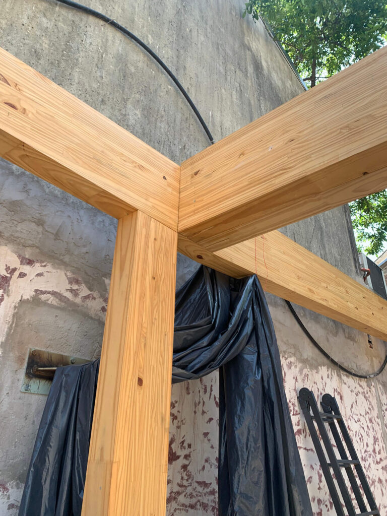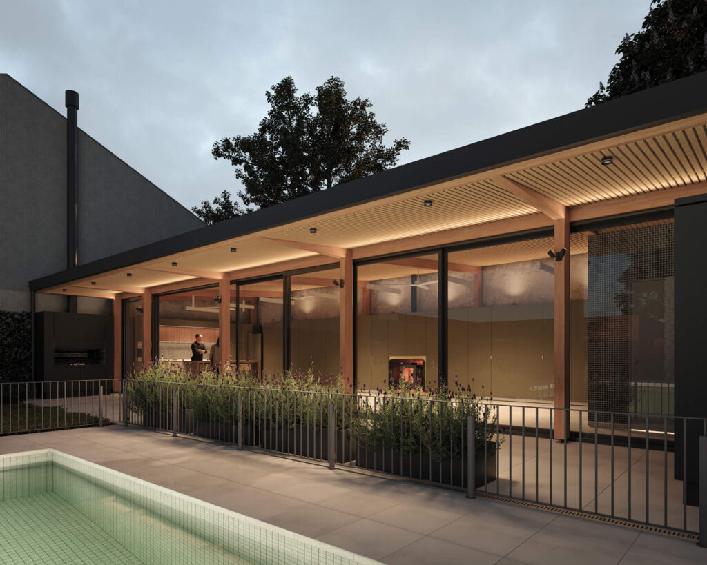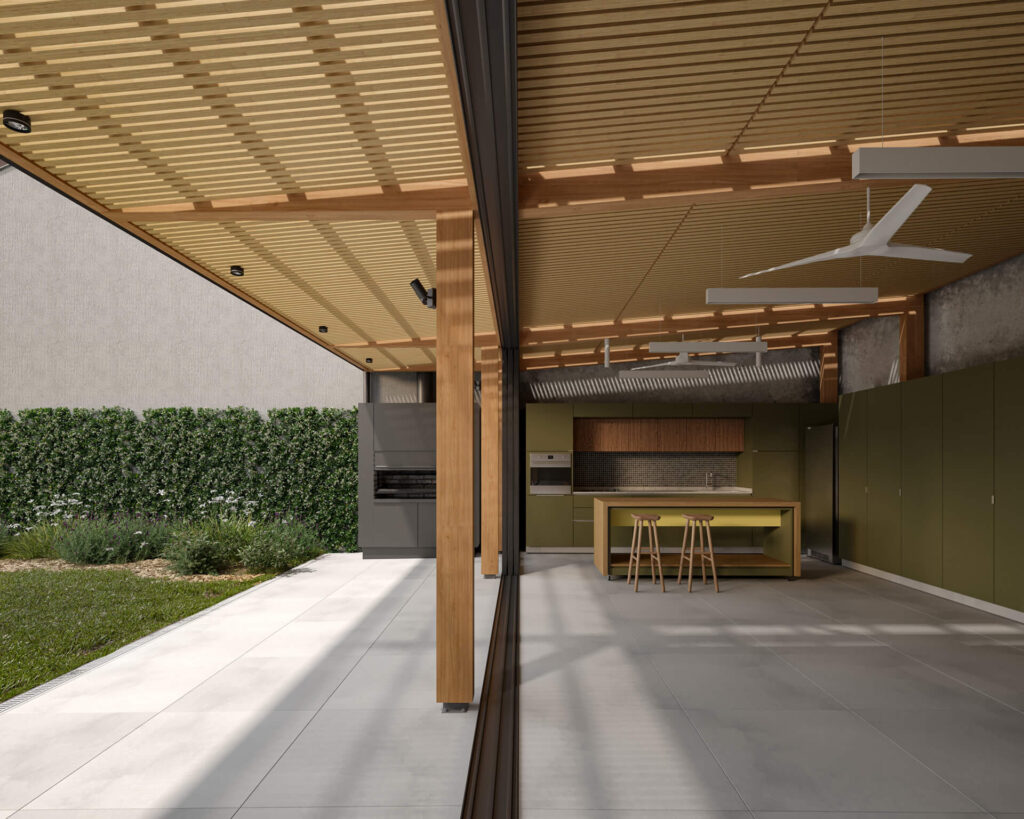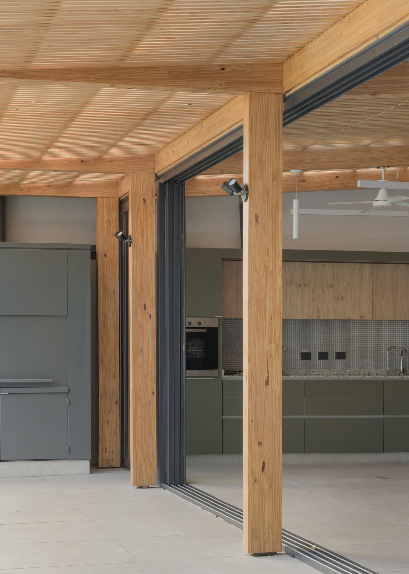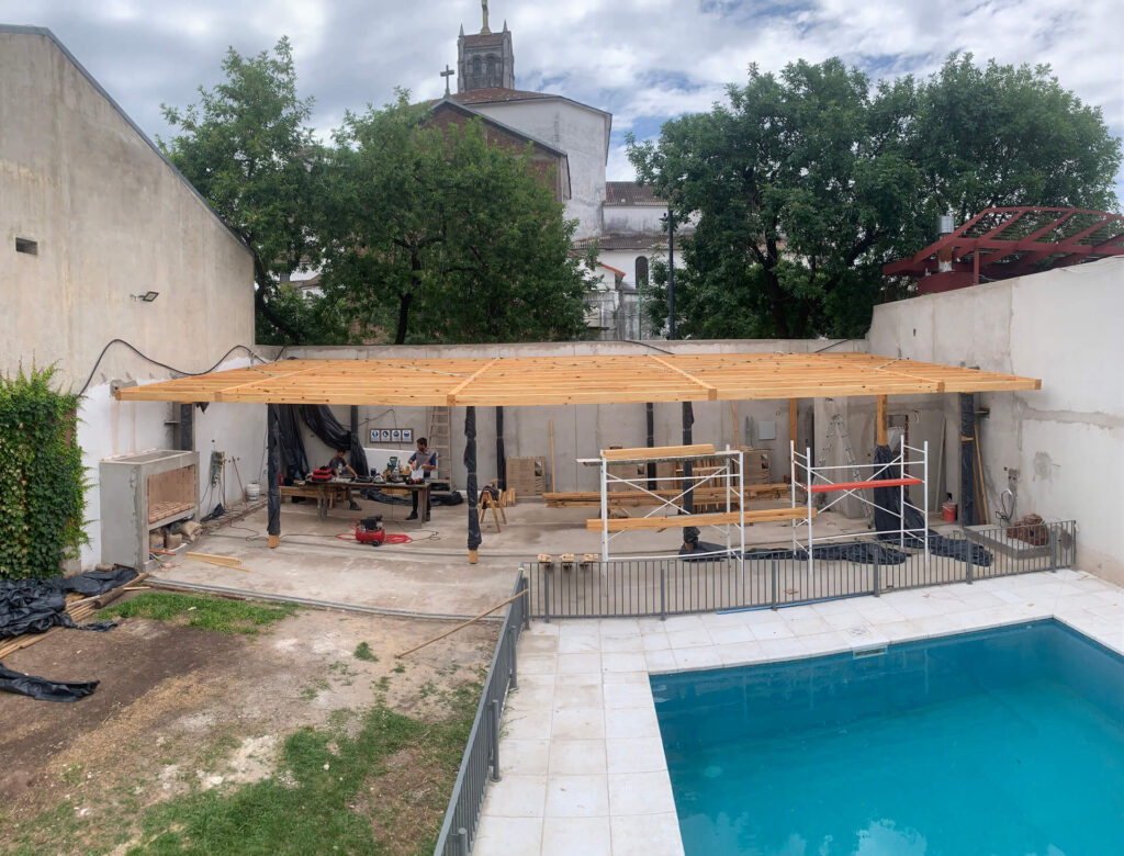 that balanced spatial qualities—linking the covered and semi-covered areas—with technical and construction simplicity. Finally, detailed engineering of the timber joints, coordinated with the structural engineer and hardware supplier, made it possible to conceal plates and fixings, reinforcing the clarity and purity of the structural system.