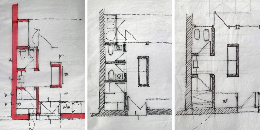 El proceso de diseño estuvo enfocado en dos aspectos principales: la búsqueda de un espacio amplio y flexible, y el desarrollo de la estructura de madera laminada. Luego de distintas iteraciones en la organización del programa, se optó por una disposición perimetral que liberara el espacio central. También se evaluaron distintas configuraciones de cubierta, que finalmente evolucionó como un plano único, buscando un
