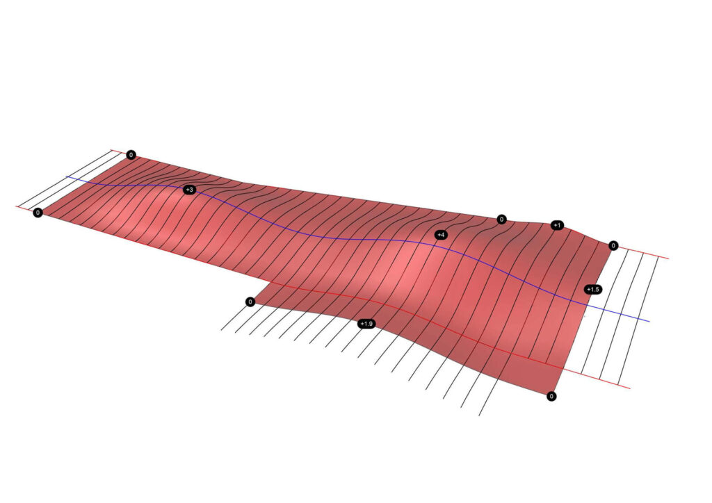El desarrollo de la geometría del techo requirió un trabajo preciso sobre la grilla subyacente, buscando